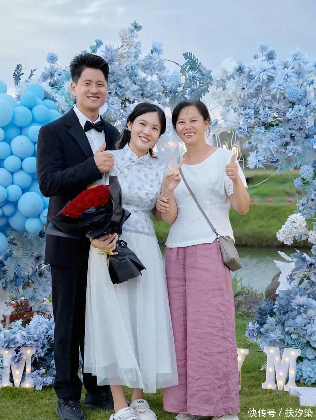 在学长求婚的隆重场面上,他的舅妈,就是上图这个,为了大外甥学长,能够成功求婚,她应该是最卖力的,从早上七点多钟开始,忙前忙后一直到活动结束。 一天下来也是累得腰酸背疼,但是为了这个大外甥,她说累也值得,看来学长挺有福气,有了这么一个好舅妈帮他。